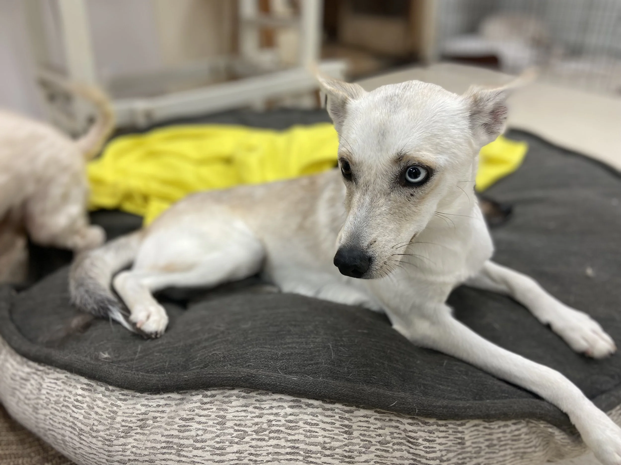 Soleil is a 3-year-old mama who was found surviving in the Bakersfield orchards with her litter of puppies. With the help of another rescue, she raised her babies to safety, and one by one they all found loving homes. Sadly, after weeks of trying, mama Soleil was still waiting for hers. That’s when we were asked to take her in.
